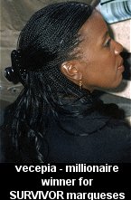 The final taping of the SURVIVOR Marqueses Series took place in Central Park on Sunday May 19th and Caron was fortunate to be in the audience on The CBS Early Show the following morning when all 16 SURVIVORS including ZOE were featured. Rosie O'Donnell presented all the SURVIVOR contestants with a car!!! Zoe is currently making appearances, being interviewed for magazines and signing her calendars throughout the country.